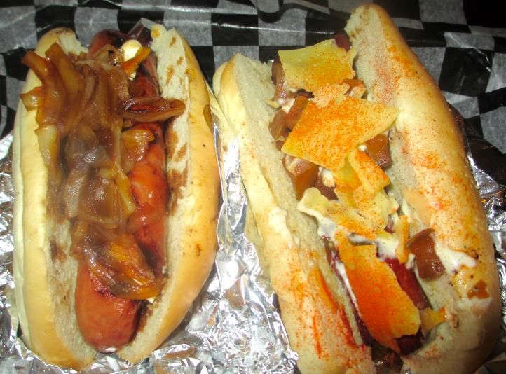 I had an Alaskan Reindeer with cream cheese and caramelized onions, and an All Beef with wasabi aioli, caramelized apple, and shaved Irish cheddar. The verdict on the reindeer? I liked it. I know, I feel guilty.