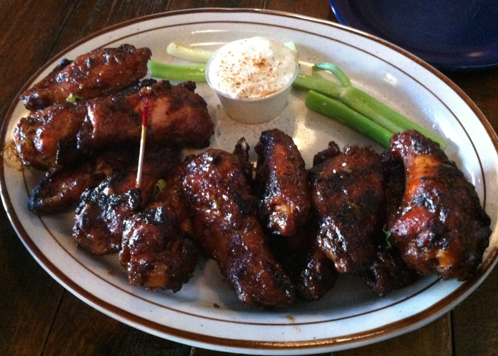 We also shared the Jumbo BBQ Chicken Wings, which can be ordered in sets of 3, 6, or 13. They're spice-rubbed, pit-smoked, then finished on the grill, and served with bleu cheese dressing, celery sticks, and covered in your choice of sauce. We split it up with a mild honey BBQ sauce, and hot wango tango sauce.